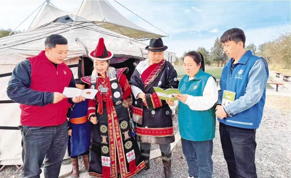 黨城灣鎮(zhèn)綜治中心組織網(wǎng)格員走進(jìn)牧區(qū)開展法治宣傳活動(2024年8月20日拍攝)。 肅北縣委政法委供圖