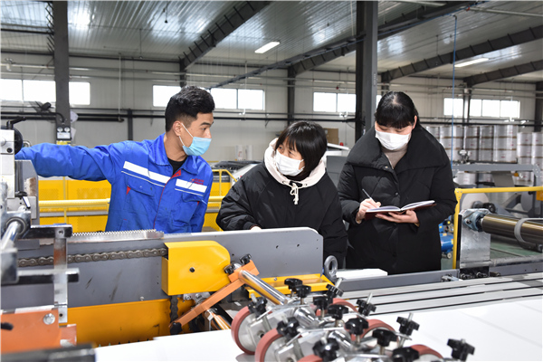 為切實幫助復工復產企業(yè)解決實際困難,安徽省滁州市南譙區(qū)紀委監(jiān)委女干部們組成“巾幗服務隊”,深入企業(yè)生產加工車間,開展調研走訪,跟進督促政策落實。(安徽省滁州市南譙區(qū)紀委監(jiān)委 孫煒 攝)