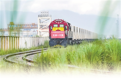 8月23日,前往老撾萬象的國際貨物列車駛出中老鐵路中國玉溪研和站。當(dāng)日,中老鐵路國際貨物列車(玉溪—萬象)實(shí)現(xiàn)雙向開行。新華社記者 陳欣波 攝