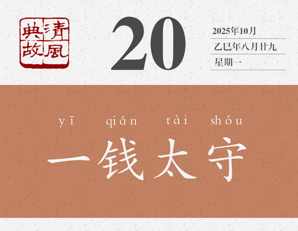 劉寵聽了他們的話說:“我的政績怎么能像您幾位說得這樣好呢?真是辛苦你們了!”為表示接受他們的美意,他從每個人帶來的錢中挑了一枚收下了。民間還流傳說,劉寵出了山陰界,就把收下的幾枚錢投進(jìn)江里,江水頓時清澈見底。從此之后,此江便被稱為錢清江。劉寵去世后,人們在江邊修了一個亭子就叫“一錢亭”,為他修建了一座廟就叫“一錢太守廟”。“一錢太守”不僅成為劉寵的稱號,也成為后世稱頌地方官員為民造福、為政清廉的典故。明人高啟詩《野老行送陳大尹》:“雞鳴相送拜道邊,愿公受取一大錢。”