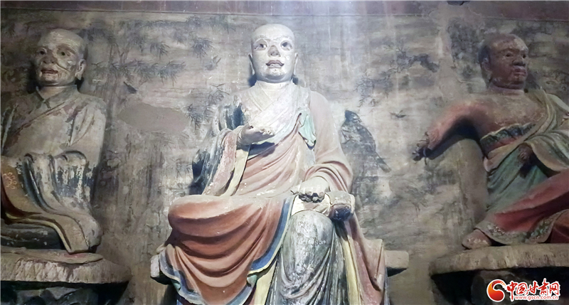 據(jù)介紹,大殿四壁及二樓均有明清時期壁畫,內(nèi)容有佛、菩薩、弟子、諸天神將、佛經(jīng)故事及《西游記》《封神演義》《山海經(jīng)》故事的巨幅壁畫人物等,線條流暢,色澤清麗,構(gòu)圖雜而不亂。特別是《西游記》壁畫,比《西游記》成書還要早大約200年。