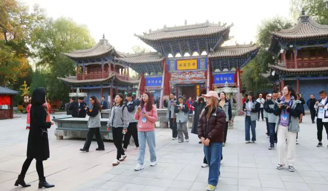 18日上午,迎著耀眼的晨光,采訪團(tuán)成員乘坐大巴車來(lái)到了集自然風(fēng)光、石窟藝術(shù)、民族風(fēng)情、宗教文化于一體的肅南馬蹄寺。馬蹄寺是河西走廊著名的佛教勝地,石窟群開(kāi)鑿于十六國(guó)北涼時(shí)期,距今約1600年的歷史,是絲綢之路上至關(guān)重要的歷史文化瑰寶,也是我國(guó)早期石窟的杰出代表。秋日的馬蹄寺,秋高氣爽,景色宜人,遠(yuǎn)遠(yuǎn)看去,紅綠相間,層林盡染,大家行走在落葉飄零的山間小路上,對(duì)這座建在懸崖峭壁之上、將棧道鑲嵌在山體之內(nèi)的石窟充滿了好奇。