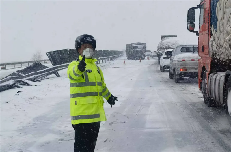 2024年2月17日,一場(chǎng)罕見(jiàn)的暴風(fēng)雪突襲連霍高速經(jīng)過(guò)的玉門(mén)、瓜州等地,致數(shù)萬(wàn)群眾被困冰天雪地。53歲的雒維兵身先士卒,帶領(lǐng)大隊(duì)全體民輔警落實(shí)遠(yuǎn)端分流、近端疏導(dǎo)等措施,配合“一路四方”各職能部門(mén)全力做好清雪除冰、應(yīng)急管制和現(xiàn)場(chǎng)救援各項(xiàng)工作。零下二十多度的嚴(yán)寒中,他一處處排查、一輛輛疏導(dǎo),連續(xù)奮戰(zhàn)36小時(shí),成功疏導(dǎo)車(chē)輛3萬(wàn)余輛、轉(zhuǎn)移受困群眾4000余人,確保了高速公路“生命線”的安全暢通。