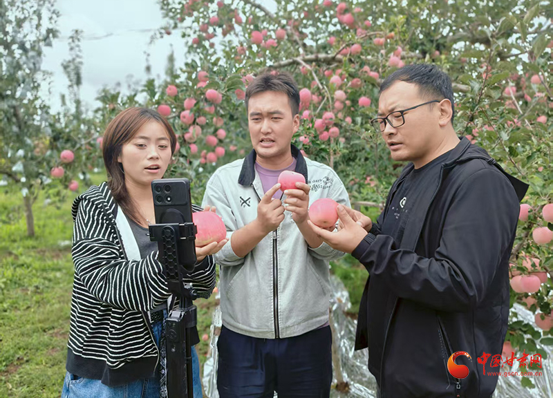 果園里,團(tuán)隊(duì)又開始了新一輪直播,年輕主播手捧一顆嘎啦蘋果仔細(xì)講解,后臺(tái)訂單提示音此起彼伏。