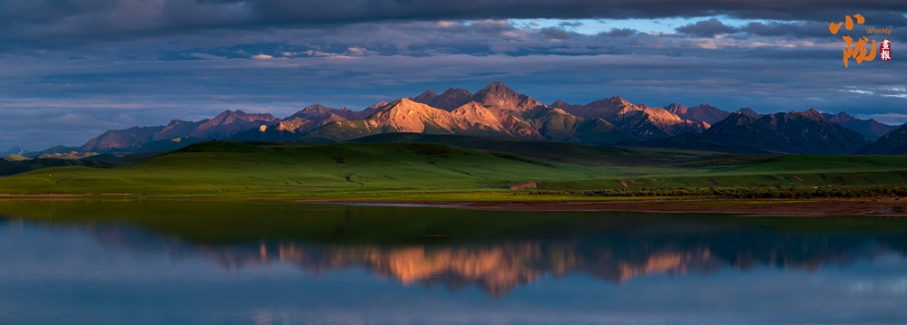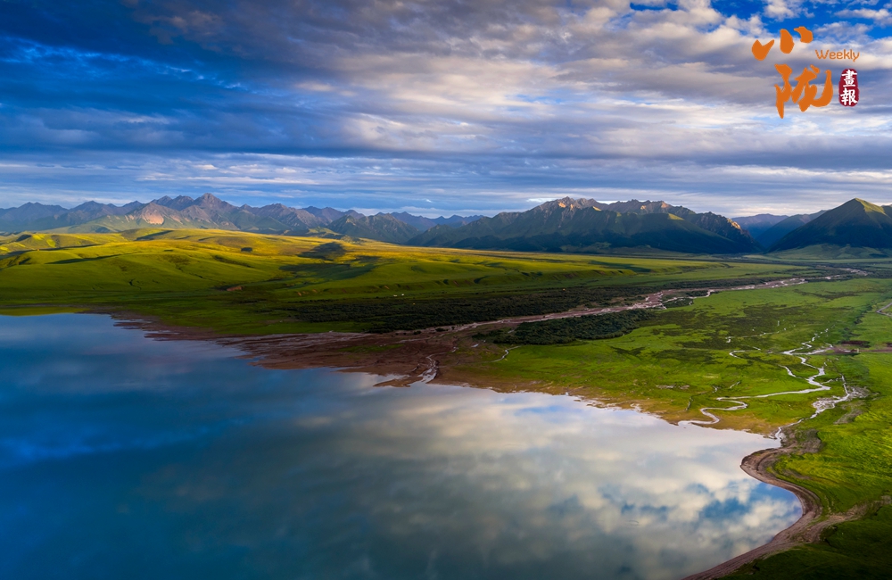 站在祁連山主峰冷龍嶺北坡瞭望,廣袤無(wú)垠的草原一片金黃,遠(yuǎn)方是連綿的祁連山,眼前是鸞鳥(niǎo)湖,遠(yuǎn)山近水,充滿了秋色的誘惑。