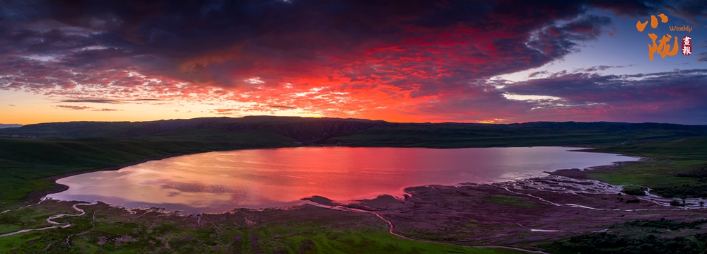 鸞鳥(niǎo)湖沐浴在夕陽(yáng)中,云影在天上,也在水上,湖面被染成紅紗,一時(shí)五彩斑斕,繽紛絢麗,恍若百花翩躚,彩蝶翻飛,湖光山色,激情蕩漾。