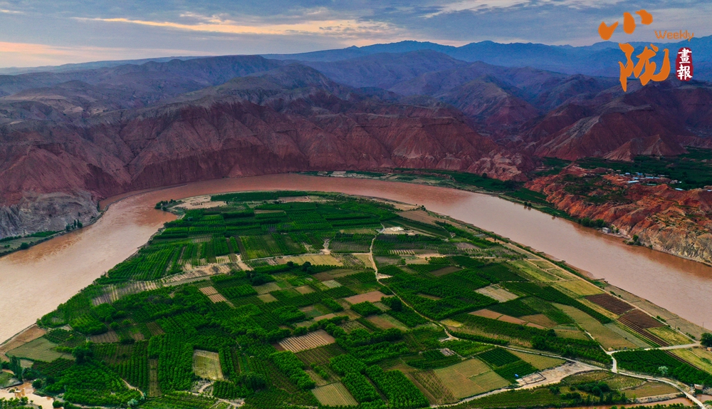 沿著黃河岸邊望去,大片綠色田園如翡翠般鑲嵌在廣袤曠野之中。阡陌縱橫間,莊稼隨風(fēng)搖曳,為蒼涼的河谷增添了一抹靈動(dòng)的柔情。遠(yuǎn)處的村落、搖曳的蘆葦、穿梭的飛鳥(niǎo),與紅山碧水共同繪就了一幅層次豐富的山水畫(huà)卷?!?/p>