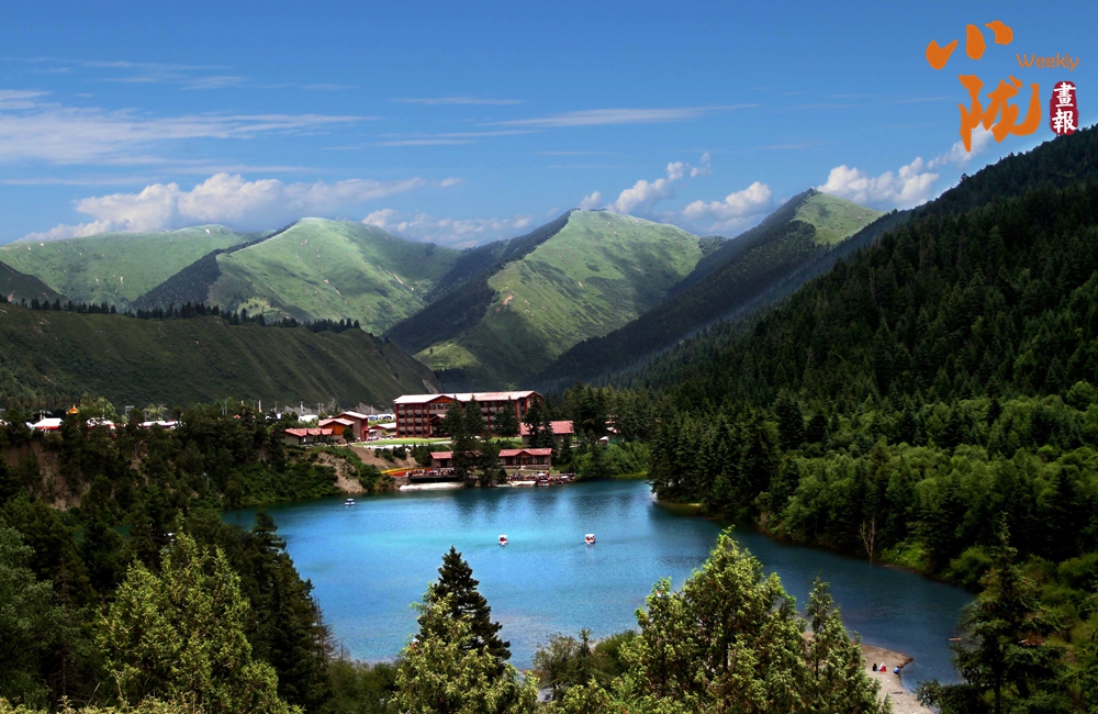 圖杰拉措(漢語意為觀音湖)寧靜地臥在群山的懷抱中,湖面平靜如鏡,似一塊無瑕而絢麗的翡翠,倒映著奇石雄峰、蒼松翠柏??粗娨猱嬀戆愕牧鹆Ш谒{天白云的映襯下絢麗奪目,心中頓時愜意舒爽。