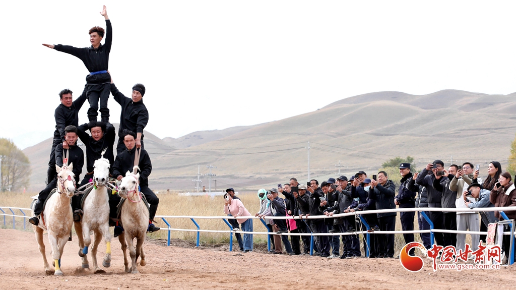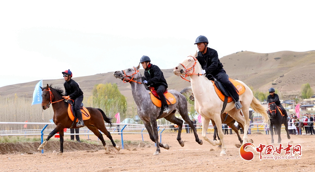 10月14日,山丹縣的一場賽馬會上,騎手們正策馬揚鞭,為游客展示多項馬術(shù)項目。山丹縣毗鄰祁連山自然保護(hù)區(qū)和山丹軍馬場,坐擁優(yōu)質(zhì)草場資源,養(yǎng)馬歷史逾兩千年,馬文化底蘊深厚,產(chǎn)業(yè)基礎(chǔ)扎實。近年來,當(dāng)?shù)貒@馬文化主題,建設(shè)了賽馬場、觀光馬道、育馬基地等設(shè)施,致力于為游客與馬術(shù)愛好者打造一個獨具特色的馬文化體驗地。