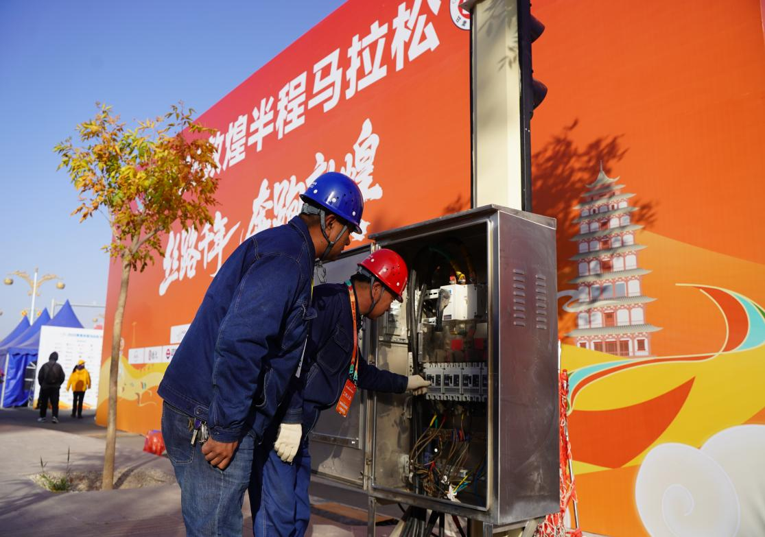 10月19日,2025敦煌半程馬拉松城市“鹿”跑挑戰(zhàn)賽鳴槍開跑,5000名選手齊聚敦煌,用奔跑展現(xiàn)活力與激情。國網(wǎng)敦煌市供電公司的保電人員全程堅守現(xiàn)場,為賽事順利進行提供堅實可靠的電力保障。