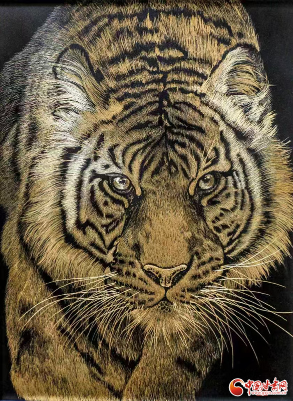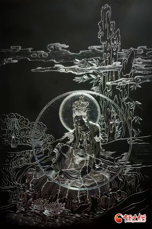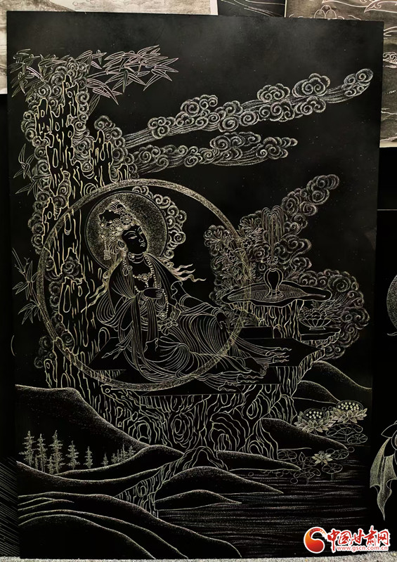 對張兆武來說,做鍥金畫從來不是“照貓畫虎”。他琢磨傳統(tǒng)書畫的筆墨、篆刻的力道,慢慢攢出了自己的一套刀法;創(chuàng)作時,心里裝的也全是敦煌——從莫高窟第112窟里“反彈琵琶”的靈動舞姿,到傳說中“九色神鹿”的溫潤模樣,都成了他刻刀下的主角。他刻出的飛天,飄帶像帶著風;刻出的菩薩,眉眼間透著莊重;金屬的光澤在畫面上流轉,明明是靜態(tài)的畫,卻像在講一段活的敦煌故事。“不用多說什么,看過的人能懂這份美。”張兆武說的這份“懂”,恰恰打破了文化和語言的距離,讓東方的古老美學,和全世界的現(xiàn)代審美碰出了共鳴。