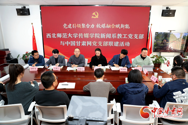 中國甘肅網(wǎng)11月14日訊(西北角·中國甘肅網(wǎng)記者 任磊)11月14日上午,西北師范大學(xué)傳媒學(xué)院新聞系教工黨支部與中國甘肅網(wǎng)黨支部共同開展了以“黨建引領(lǐng)聚合力 校媒融合賦新能”為主題的聯(lián)建活動(dòng)。活動(dòng)在網(wǎng)站智慧黨建甘肅紅云平臺(tái)體驗(yàn)中心舉行,雙方圍繞黨建工作、媒體融合及人才培養(yǎng)等議題展開深入交流,共同探索黨建引領(lǐng)下校媒合作的新路徑。