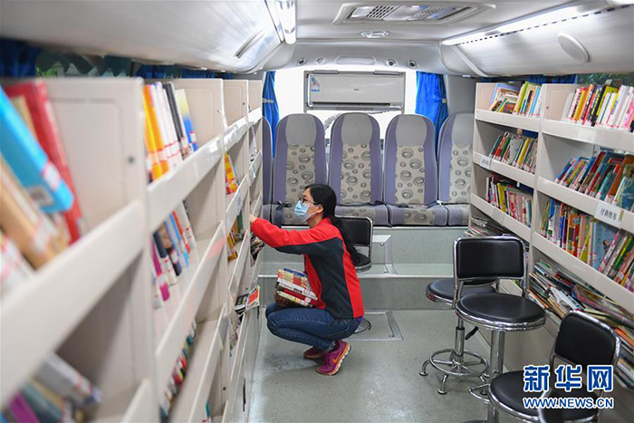 3月26日,在長(zhǎng)沙岳麓區(qū)石嶺塘社區(qū),家長(zhǎng)和小朋友在流動(dòng)圖書館里挑選書籍。 近日,在做好疫情防控工作的同時(shí),長(zhǎng)沙流動(dòng)圖書館恢復(fù)運(yùn)營(yíng)。長(zhǎng)沙流動(dòng)圖書館是長(zhǎng)沙圖書館的總分館流動(dòng)服務(wù)項(xiàng)目之一,以大巴車為載體,每月定期到社區(qū)、學(xué)校、企業(yè)、工地等區(qū)域,為市民提供閱覽、咨詢、辦證、借書、還書等便捷化公共服務(wù)。 新華社記者 陳澤國(guó) 攝