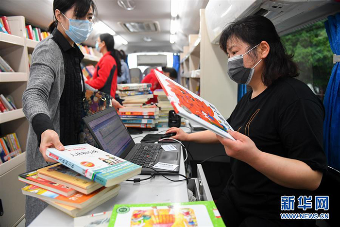 3月26日,在長(zhǎng)沙岳麓區(qū)石嶺塘社區(qū),市民在流動(dòng)圖書館里辦理借書。 近日,在做好疫情防控工作的同時(shí),長(zhǎng)沙流動(dòng)圖書館恢復(fù)運(yùn)營(yíng)。長(zhǎng)沙流動(dòng)圖書館是長(zhǎng)沙圖書館的總分館流動(dòng)服務(wù)項(xiàng)目之一,以大巴車為載體,每月定期到社區(qū)、學(xué)校、企業(yè)、工地等區(qū)域,為市民提供閱覽、咨詢、辦證、借書、還書等便捷化公共服務(wù)。 新華社記者 陳澤國(guó) 攝