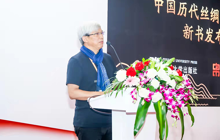 隨后,浙江大學(xué)出版社社長(zhǎng)褚超孚在致辭中強(qiáng)調(diào),近年來,浙江大學(xué)出版社在中國絲綢和“一帶一路”主題圖書的出版上不斷探索、不斷深耕,與中國絲綢博物館建立了戰(zhàn)略合作關(guān)系,五年來雙方合作出版了中文版和多語種版本近50種精品圖書。雙方在高端學(xué)術(shù)論壇及數(shù)字融合等方面也深入合作。本次由趙豐館長(zhǎng)所主編的——“中國歷代絲綢藝術(shù)叢書”是雙方又一次精誠合作的最新成果。這套叢書不僅擁有國家出版基金項(xiàng)目和國家“十三五”項(xiàng)目雙重頭銜,也是“錦秀·世界絲綢互動(dòng)地圖”成果之一。