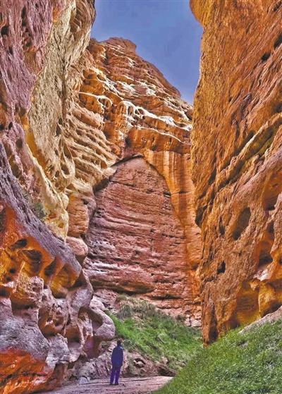 在“云直播”中,蒙古族姑娘有過這樣的描述:平山湖大峽谷海拔高度1500至2550米,其地質(zhì)構(gòu)造屬于紅層地貌,是中生代侏羅紀至新生代第三紀沉積形成的“紅色沙礫巖”,距今已有一億八百萬年至兩億四千萬年。大峽谷從谷底到頂部分布著從寒武紀到新生代各個時期的巖層,層次清晰,色調(diào)各異,并且含有各個地質(zhì)年代的代表性生物化石,又被稱為“活的地質(zhì)史教科書”。