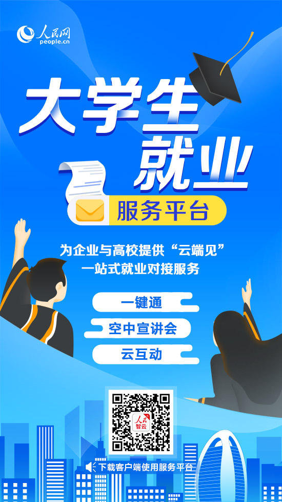 掃描二維碼下載人民智云客戶端,打開“校招”頻道,使用大學(xué)生就業(yè)服務(wù)平臺(tái)