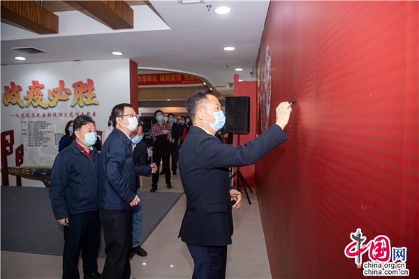 2020年4月17日上午,由中共重慶市九龍坡區(qū)委宣傳部、重慶市九龍坡區(qū)文化和旅游發(fā)展委員會、重慶市九龍坡區(qū)衛(wèi)生健康委員會、重慶市九龍坡區(qū)地方志編撰中心聯(lián)合主辦,重慶巴人博物館、重慶市九龍坡區(qū)非物質(zhì)文化遺產(chǎn)保護(hù)中心承辦的“戰(zhàn)疫必勝——九龍坡區(qū)抗擊新冠肺炎疫情專題展”在重慶巴人博物館正式開展,市文化和旅游發(fā)展委員會副主任幸軍、九龍坡區(qū)委常委、宣傳部部長顏朝華、九龍坡區(qū)政府副區(qū)長趙文明、市文化和旅游發(fā)展委員會非物質(zhì)文化遺產(chǎn)處處長嚴(yán)小紅、文物保護(hù)與考古處處長熊子華、博物館與社會文物處處長王發(fā)榮出席開展儀式。