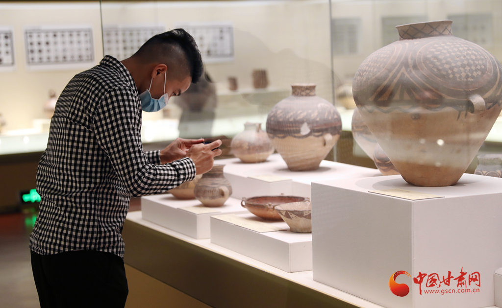 5月8日,在甘肅省博物館市民、游客正在參觀。