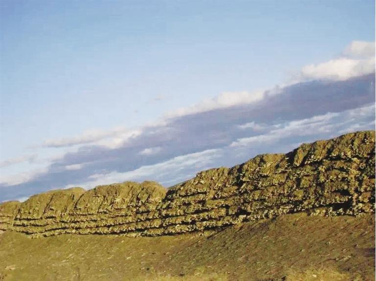 花海漢長城遺址位于玉門市花海鎮(zhèn)西泉村頭墩西側(cè)至二墩東側(cè),西起三墩,東至花海頭墩,全長約3.5公里,長城基寬約2.4米,用沙石、紅柳分層夯筑,最高部分保存有紅柳7層,是河西走廊漢代長城遺址中保存較完好的地段之一。為有效保護(hù)漢長城花海段遺址,近年來,玉門市積極實(shí)施漢長城防護(hù)工程,對該段因長期遭受風(fēng)力侵蝕,病險(xiǎn)較為嚴(yán)重的長城本體進(jìn)行了搶險(xiǎn)加固,在花海鎮(zhèn)頭墩西側(cè)至二墩河壩間1.5公里地段內(nèi)敷設(shè)了6層全封閉刺鋼絲網(wǎng),并在漢長城內(nèi)外兩側(cè)安裝防護(hù)欄、樹立保護(hù)標(biāo)志、埋設(shè)界樁界碑,有效遏制了人為破壞,對漢長城的保護(hù)發(fā)揮了積極作用。