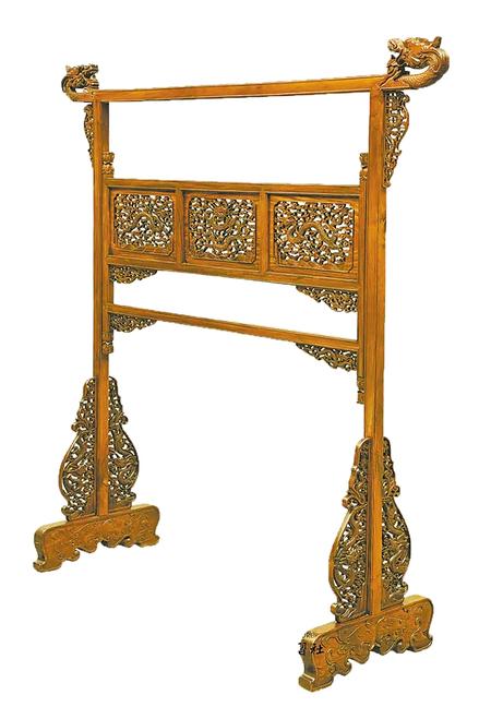 古代衣架其形式多取橫桿式,主要用于搭衣服而非掛衣服。兩側(cè)有立柱,下有墩子木底座。兩柱間有橫梁,當(dāng)中鑲中牌子,頂上有長出兩柱的橫梁,盡端圓雕鳥獸或花草。