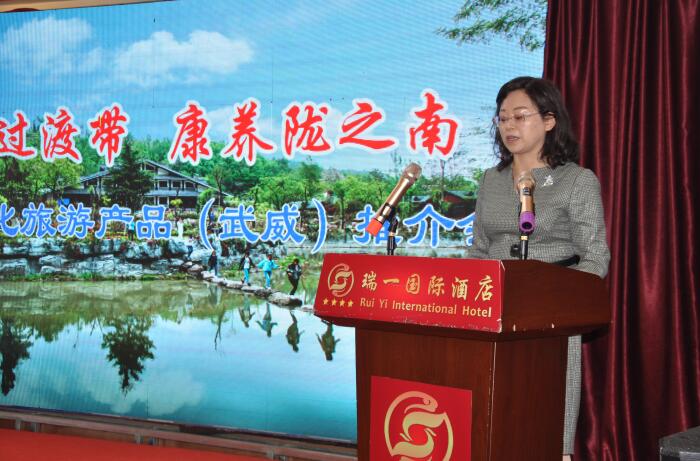 胡桂蕓在致辭中說,隴南和武威兩市文化旅游資源各具特色、互有優(yōu)勢,具有很強(qiáng)的差異性和互補(bǔ)性,隨著“一帶一路”建設(shè)的深入推進(jìn),兩地經(jīng)濟(jì)社會和文化旅游的交流將更加活躍。尤其是環(huán)西部火車游旅游專線列車的開通,更加拉近了兩地的時(shí)空距離,極大地方便了兩地游客的出行。通過今天的推介活動,我們希望參加會議的旅行社、自駕游俱樂部,多組織武威的游客來隴南觀光旅游、康養(yǎng)休閑。同時(shí),也希望隴南的文旅部門及旅游景區(qū)、旅行社提供各種優(yōu)惠以及優(yōu)質(zhì)服務(wù),為促進(jìn)兩地文化旅游事業(yè)的合作共贏做出積極的貢獻(xiàn)。