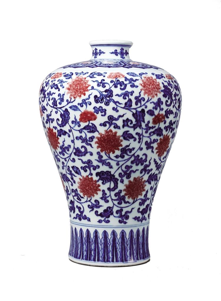 清乾隆青花釉里紅纏枝花卉梅瓶