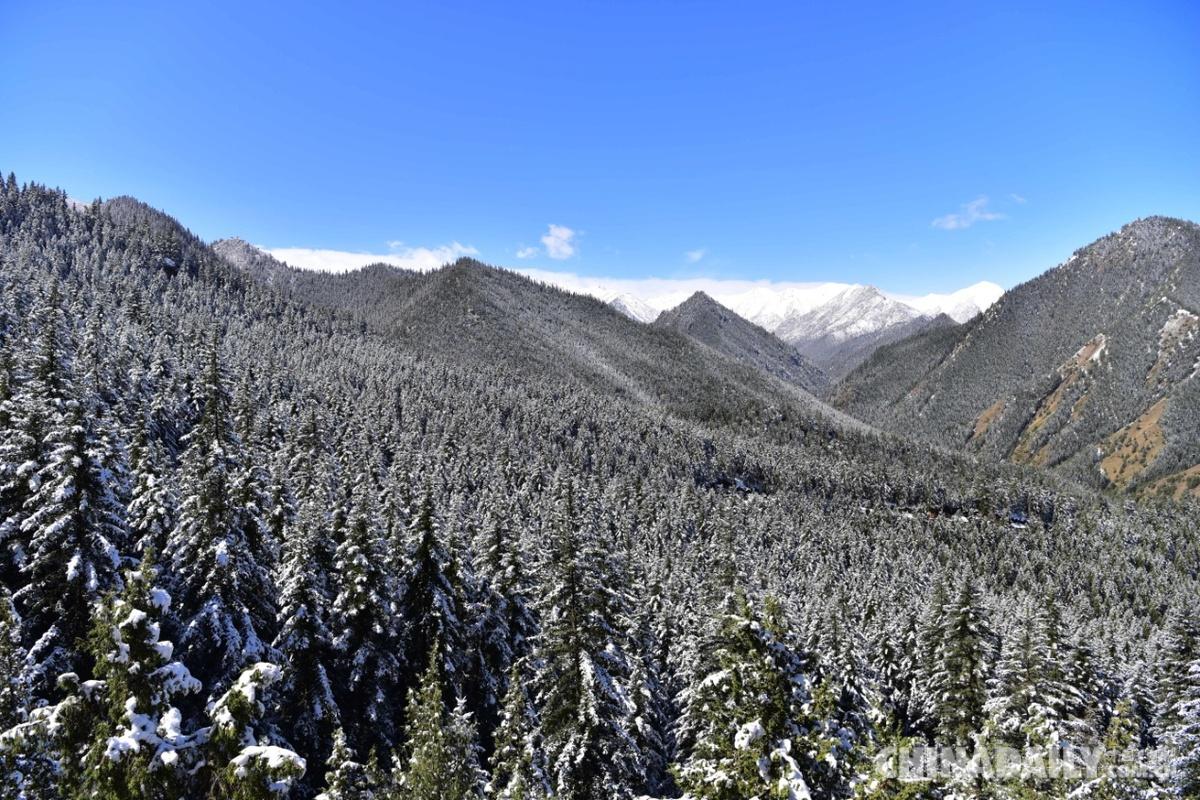 甘肅肅南中華裕固風(fēng)情走廊景區(qū)迎降雪,銀裝素裹,美輪美奐。