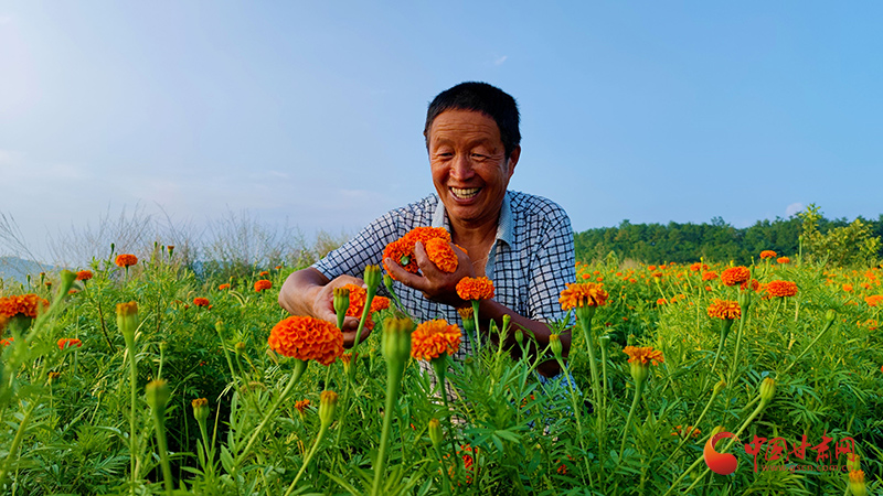 崇信:金色萬(wàn)壽菊 美了環(huán)境富了民
