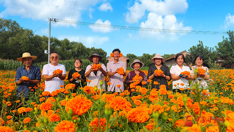 初秋時(shí)節(jié),秋高氣爽。走進(jìn)崇信縣甘莊村,村容整潔、道路寬敞,綠樹(shù)環(huán)村,成熟的萬(wàn)壽菊競(jìng)相綻放,朵朵紅花在風(fēng)中搖曳生姿,宛如金色地毯鋪滿(mǎn)田間,花農(nóng)們喜笑顏開(kāi),滿(mǎn)臉洋溢著豐收的喜悅。