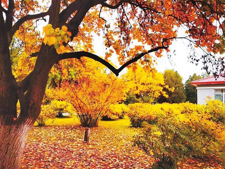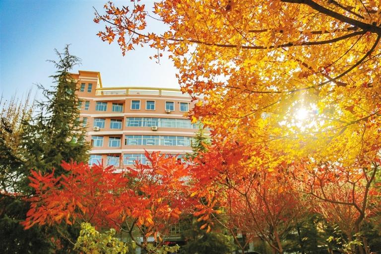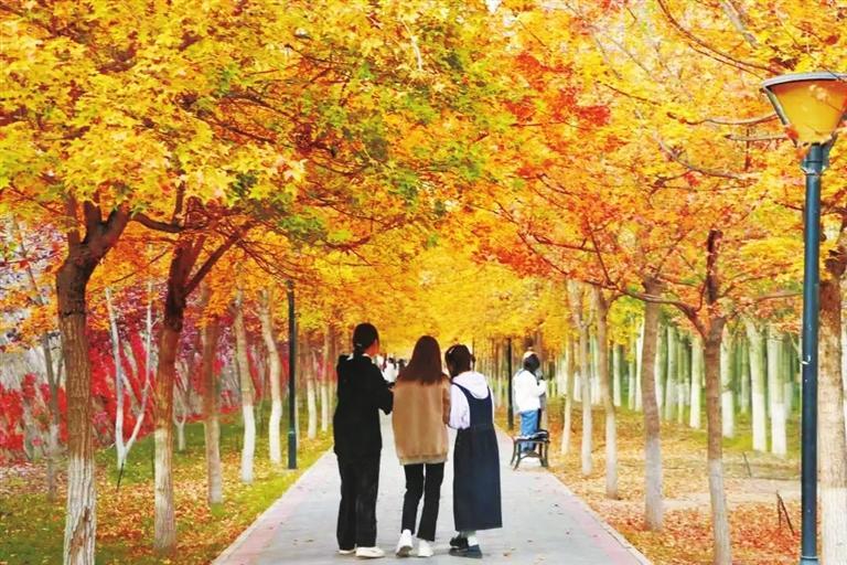 微風(fēng)輕拂,嬌黃的樹葉紛紛飄落,陽(yáng)光透過(guò)葉片滲出幾分清朗,這是專屬秋的浪漫。隨便鋪開畫紙,蘸取一點(diǎn)點(diǎn)秋色,藍(lán)天、紅墻、金葉……都是最美的色調(diào)。古樸靜雅的校園彌漫著秋思,斑駁的陽(yáng)光灑在圖書館的墻上,在濃濃的書卷氣中把農(nóng)歷十月寫進(jìn)秋的詩(shī)行,有思念、有沉淀、有墨香……蘭州“醉”美的大學(xué)校園,每一片落葉都是美的化身,綿延了時(shí)光,溫情了步履……