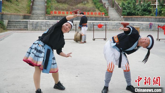 圖為白褲瑤居民正在進行“猴棍舞”表演。韋國政 攝