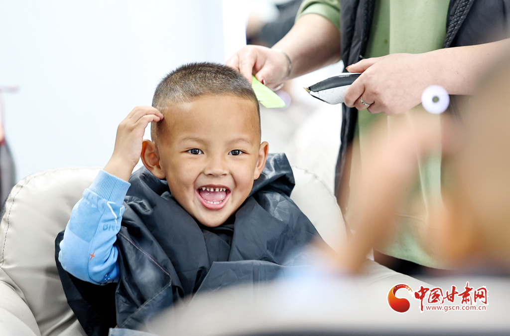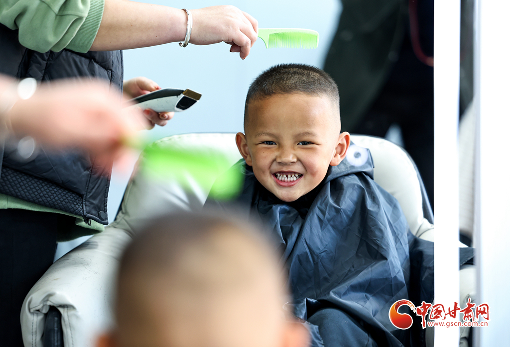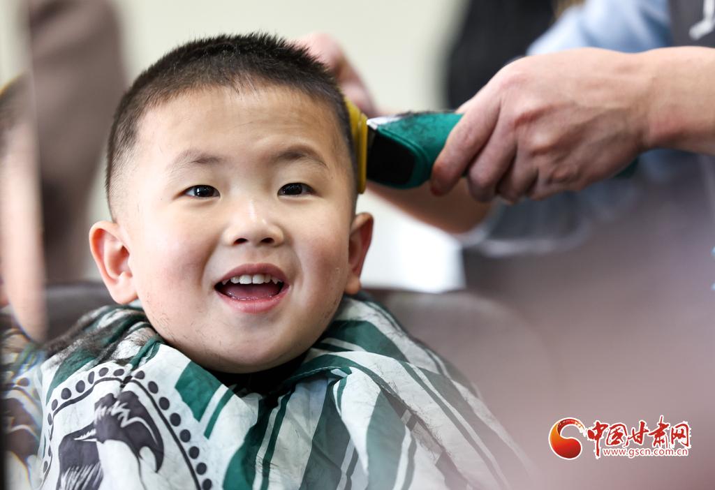 3月11日,在臨夏市一理發(fā)店內(nèi),理發(fā)師正在為一名小朋友“剃龍頭”。當(dāng)日,是農(nóng)歷二月初二,許多家長帶著孩子到理發(fā)店理發(fā),希望孩子能健康成長,日后出人頭地,為新的一年討個好彩頭。