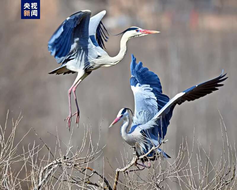 原標(biāo)題:蒼鷺如約飛來子午嶺 翩躚起舞繁衍生息