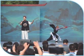 上午9時,由甘肅省文化和旅游廳、甘肅省文學(xué)藝術(shù)界聯(lián)合會、平?jīng)鍪腥嗣裾鬓k,中共平?jīng)鍪形麄鞑?、平?jīng)鍪形捏w廣電和旅游局、崆峒山大景區(qū)管委會、平?jīng)鑫幕糜萎a(chǎn)業(yè)投資集團(tuán)有限責(zé)任公司承辦“詩意甘肅·絲路長風(fēng)三千里——武詠崆峒·平?jīng)鲈姇?rdquo;主詩會活動在崆峒山中臺拉開帷幕。此次詩會融合詩歌、武術(shù)、舞蹈、音樂等多種藝術(shù)形式,邀請國內(nèi)知名朗誦藝術(shù)家與本地文藝工作者聯(lián)袂演出,構(gòu)建起一場恢宏的詩意盛宴,激蕩起一座城的壯志豪情、歷史榮光。