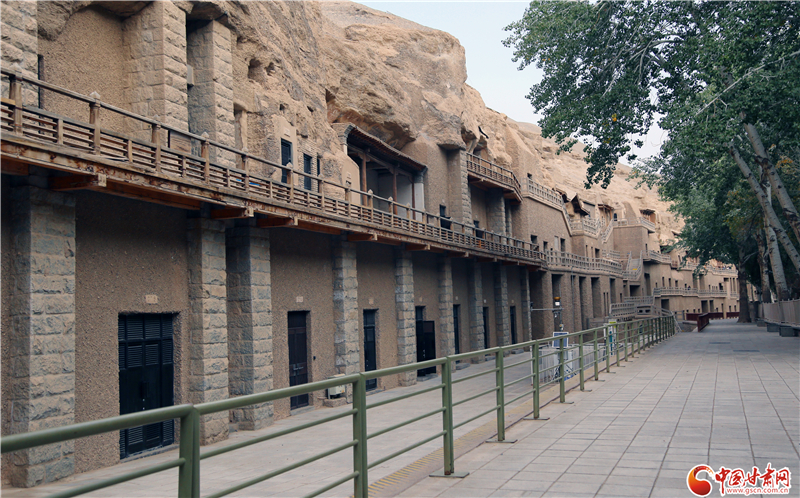 據(jù)敦煌研究院資料顯示,石窟以彩塑為主體,四壁及頂均彩繪壁畫,地面漫鋪花磚,窟外有窟檐(或殿堂)、棧道,窟窟相通相連,是以石窟建筑、彩塑和壁畫三者合一的佛教文化遺存。
