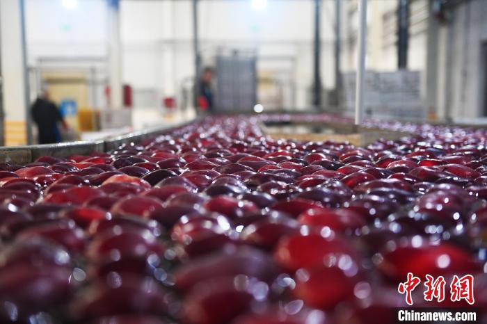 連日來(lái),從事30多年蘋果生意的秦安縣雪原果品有限公司負(fù)責(zé)人蔡全斌忙得不可開交,加工車間內(nèi)蘋果自動(dòng)化分揀線晝夜不歇,車間外運(yùn)輸蘋果的大貨車往來(lái)不絕。